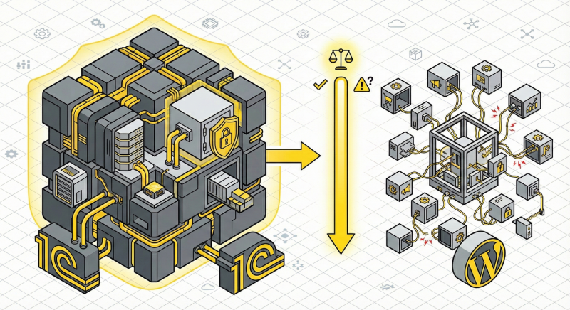 Битрикс включает CRM-функции, модуль документооборота и бесшовную интеграцию с 1С для автоматизации учета товаров, заказов и клиентской базы, что идеально для российских компаний с ERP-системами. WordPress требует дополнительных плагинов для подобных задач, что усложняет настройку и увеличивает риски. Многосайтовость и гибкая система прав доступа в Битрикс упрощают управление крупными проектами.