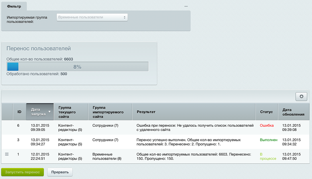Модуль позволяет выполнить перенос (импорт) пользователей из другого сайта, на к-ом установлена редакция 1С-Битрикса.