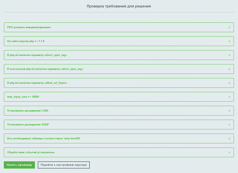 Наше решение проверено и работает на установленном 1С-Битрикс без сторонних модулей и расширений, работающих с товарами, остатками, ценами, а также без использования мультисайтовости.