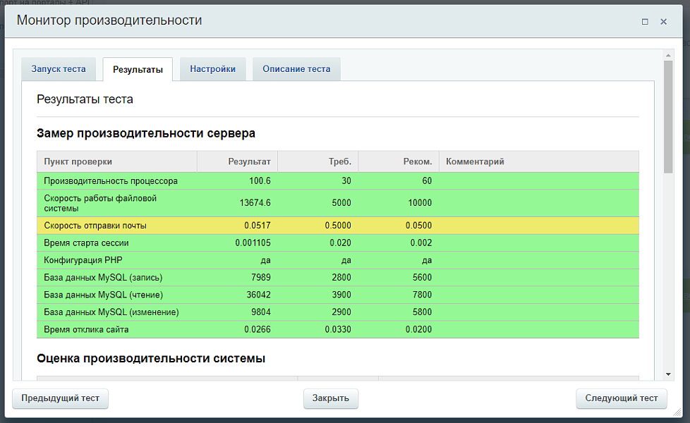 - монитор производительности (используется стандартный модуль «Монитор производительности»),