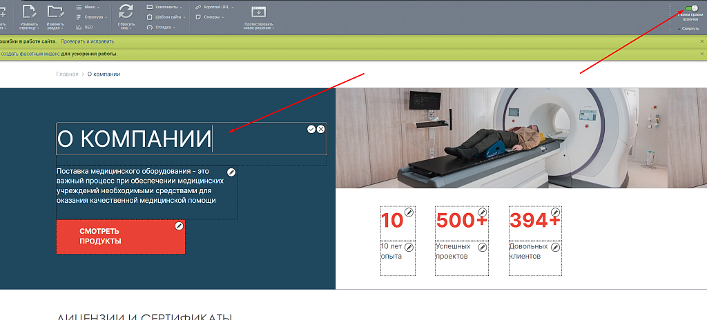 Компонент похож на включаемую область, но с более удобными функциями. Он позволяет редактировать разметку прямо на странице в режиме правки, без редактора.