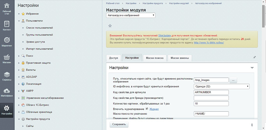 Модуль массово прикрепляет загруженные изображения к соответствующим элементам инфоблока. Изображения для загрузки выкладываются в определенный каталог на хостинге. При загрузке изображений одновременно создаются файлы миниатюр для них. Размеры миниатюр указываются в настройках инфоблока.