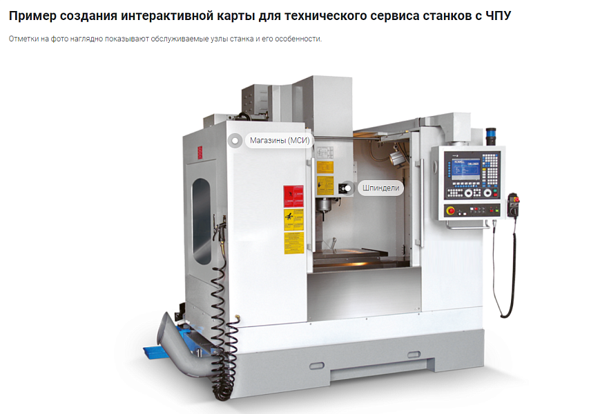 - Возможность добавлять интерактивные метки на изображения и фото с помощью удобного графического редактора.