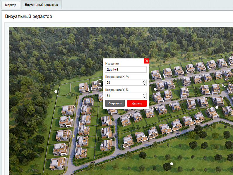 - Возможность настраивать масштабирование картинки с метками для удобного отображения на компьютерах и мобильных телефонах