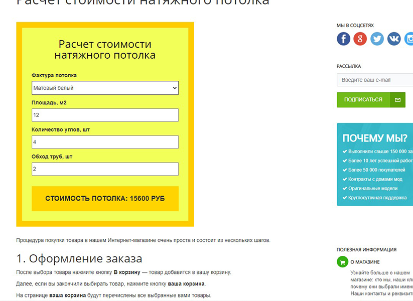 Калькулятор (конфигуратор) позволяет рассчитать необходимые параметры ваших товаров/услуг по ценам из каталога (стоимость, количество, сроки и др.), а также отправить рассчитанное количество товаров/услуг на e-mail или добавить в корзину.