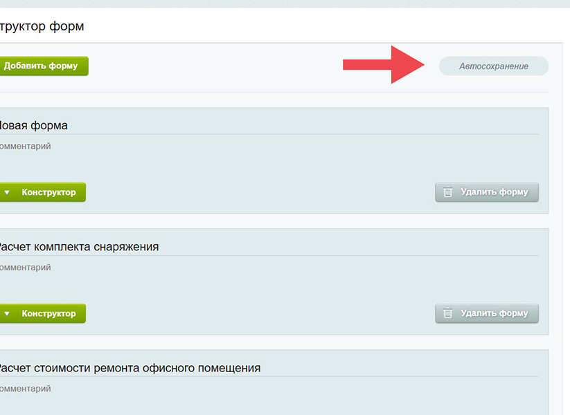 | Автосохранение В процессе работы в конструкторе требуется производить множество действий. После любых внесенных изменений конструктор выполняет сохранение. При необходимости автосохранение можно отключить. | ![]() |