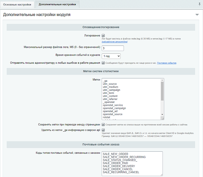 - возможность создавать по несколько профилей интеграции для каждого инфоблока, почтового события и результата веб-формы;