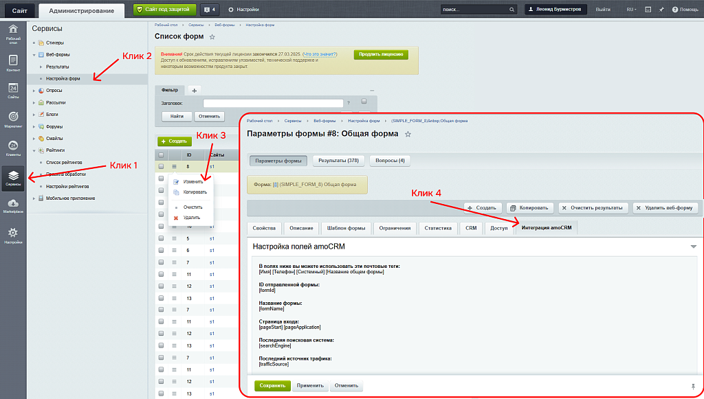 Интеграция amoCRM с веб-формами сайта 1С-Битрикс – это модуль для автоматической передачи всех заявок сайта напрямую в амоСРМ без задержек!
