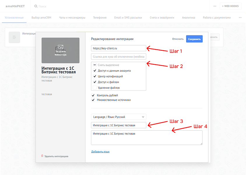 Особенности интеграции: