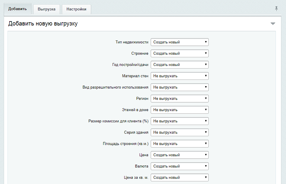 - Возможность редактировать параметров созданных выгрузок