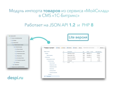 Модуль является облегченной (Lite) версией модуля "МойСклад: Синхронизация товаров по API".Основной функционал модуля включает в себя: