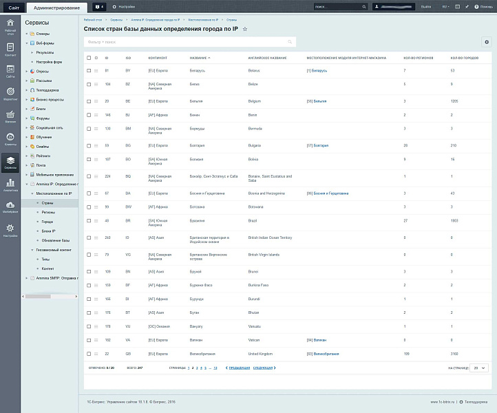 Модуль "Ammina: Определение города по IP" позволяет определять местоположение посетителя сайта по IP адресу с уточнением по GPS координатам.Основные возможности модуля:1. Определение страны, региона и города посетителя по IP2. Уточнение ближайшего города по GPS координатам