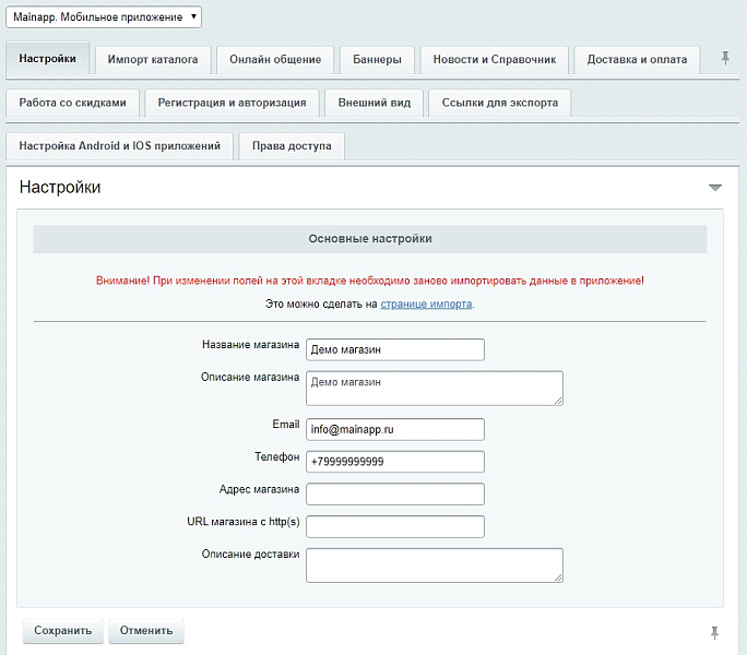 Модуль синхронизирует работу и функционал мобильных приложений MainApp для IOS и Android с вашим интернет-магазином. Управление приложениями происходит из административной панели вашего интернет-магазина.