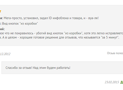 Голосования за отзывы, в т.ч. для незарегистрированных пользователей (указывается в настройках модуля).