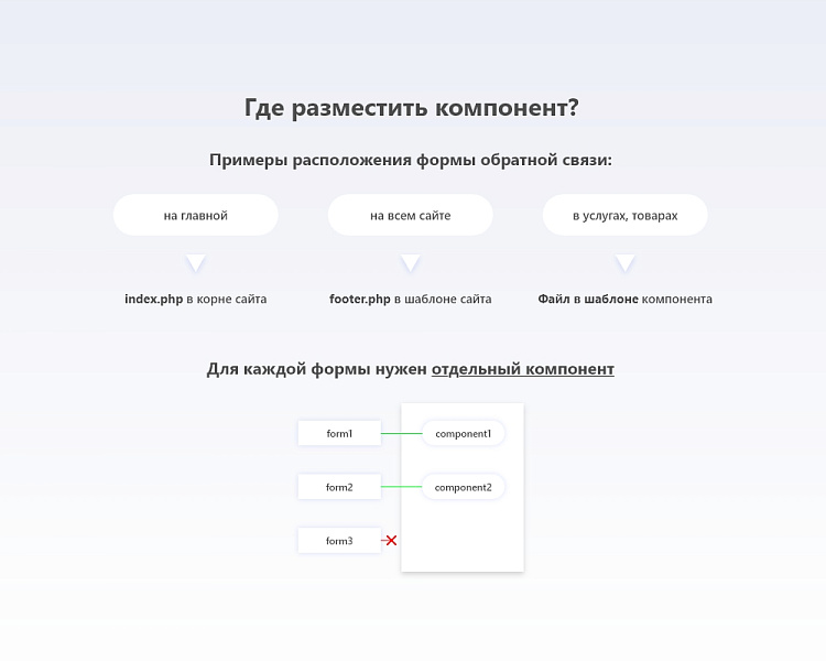 Каждая форма работает со своим компонентом в публичной части.