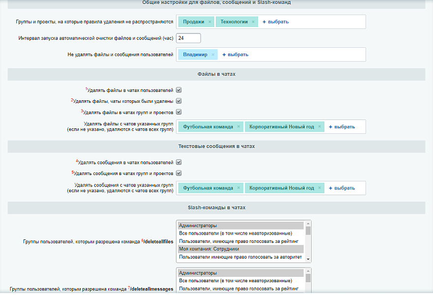 Модуль удаляет устаревшие текстовые сообщения или сообщения с файлами в чатах веб-мессенджера 1С-Битрикс24 (коробочная версия). Какие файлы считать устаревшими, указывается в настройках этого модуля.